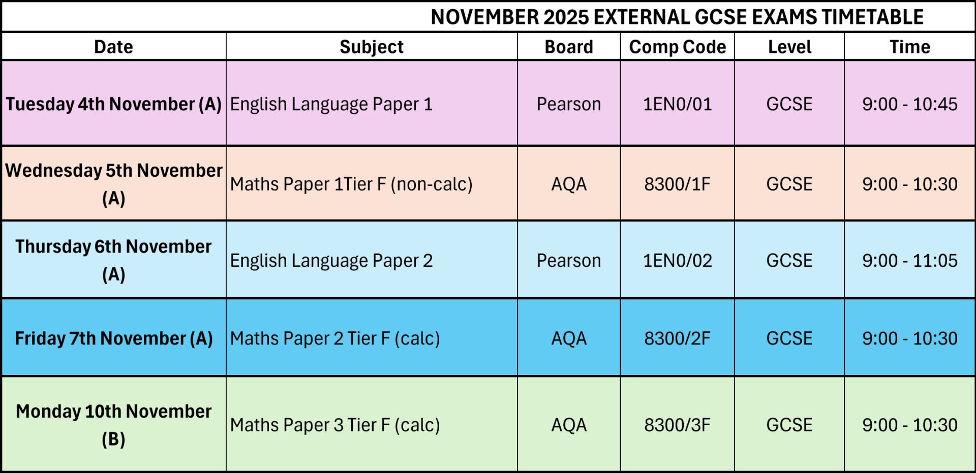 November External Exam Timetables (PDF)