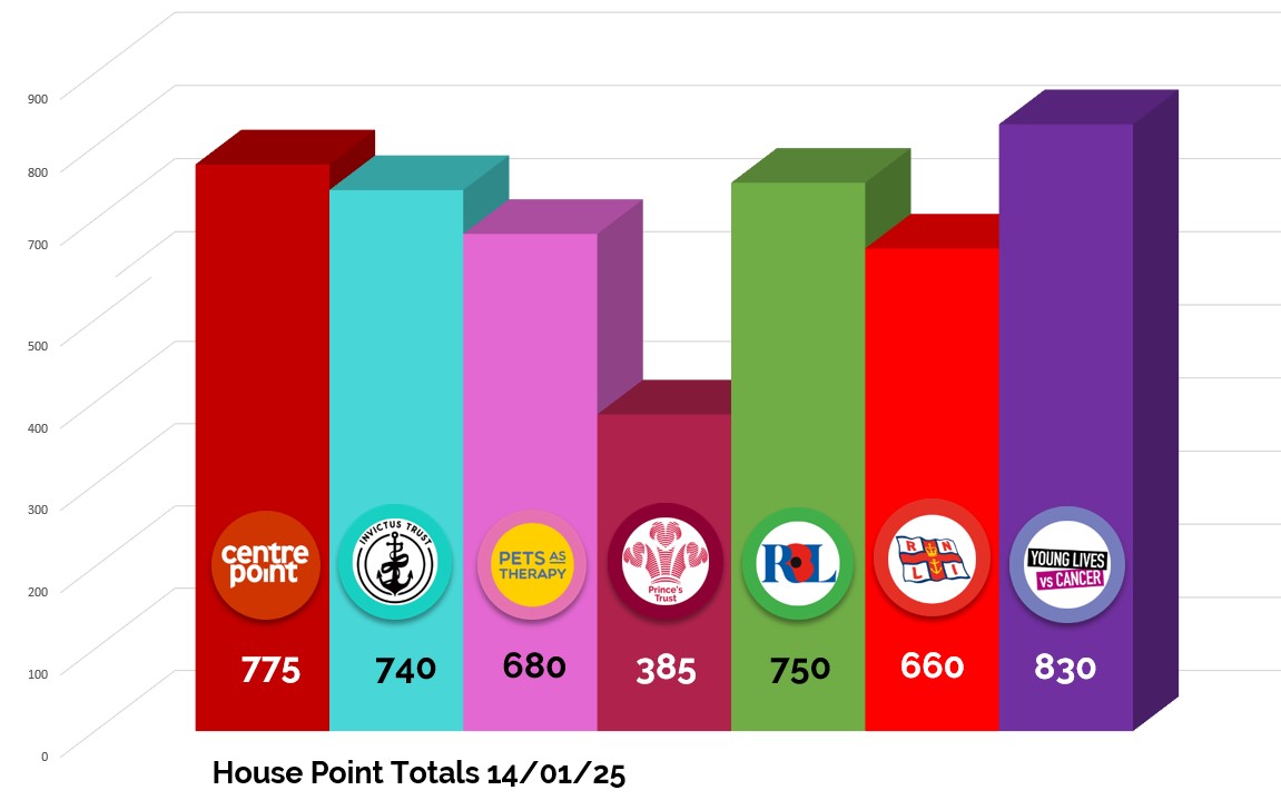 Throughout the academic year, students will be invited to compete in many diverse events; an eclectic mix, in order to appeal to all the varying interests, strengths and intrigue of our students. Alongside these competitions, further House points can be earned by recognising individual achievement points and attendance. Similarly, fundraising events will take place to raise awareness and support the chosen charities.