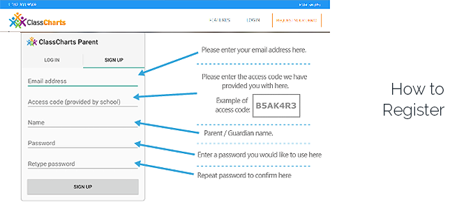 Go to www.classcharts.com and click login, and then follow the instructions below: